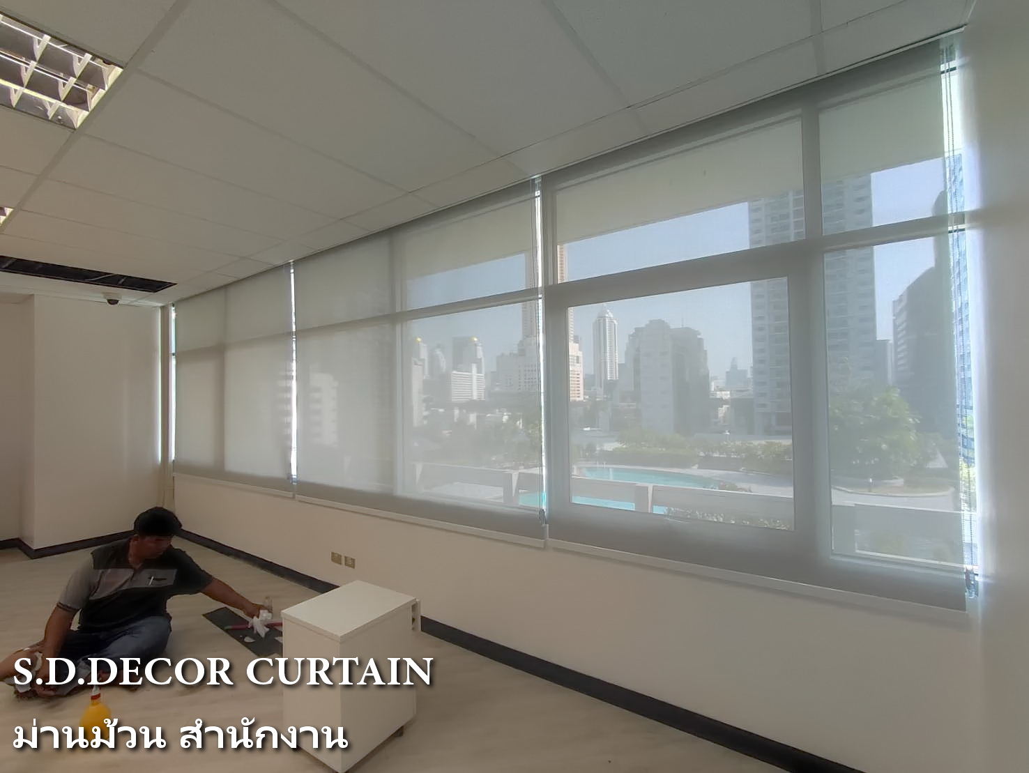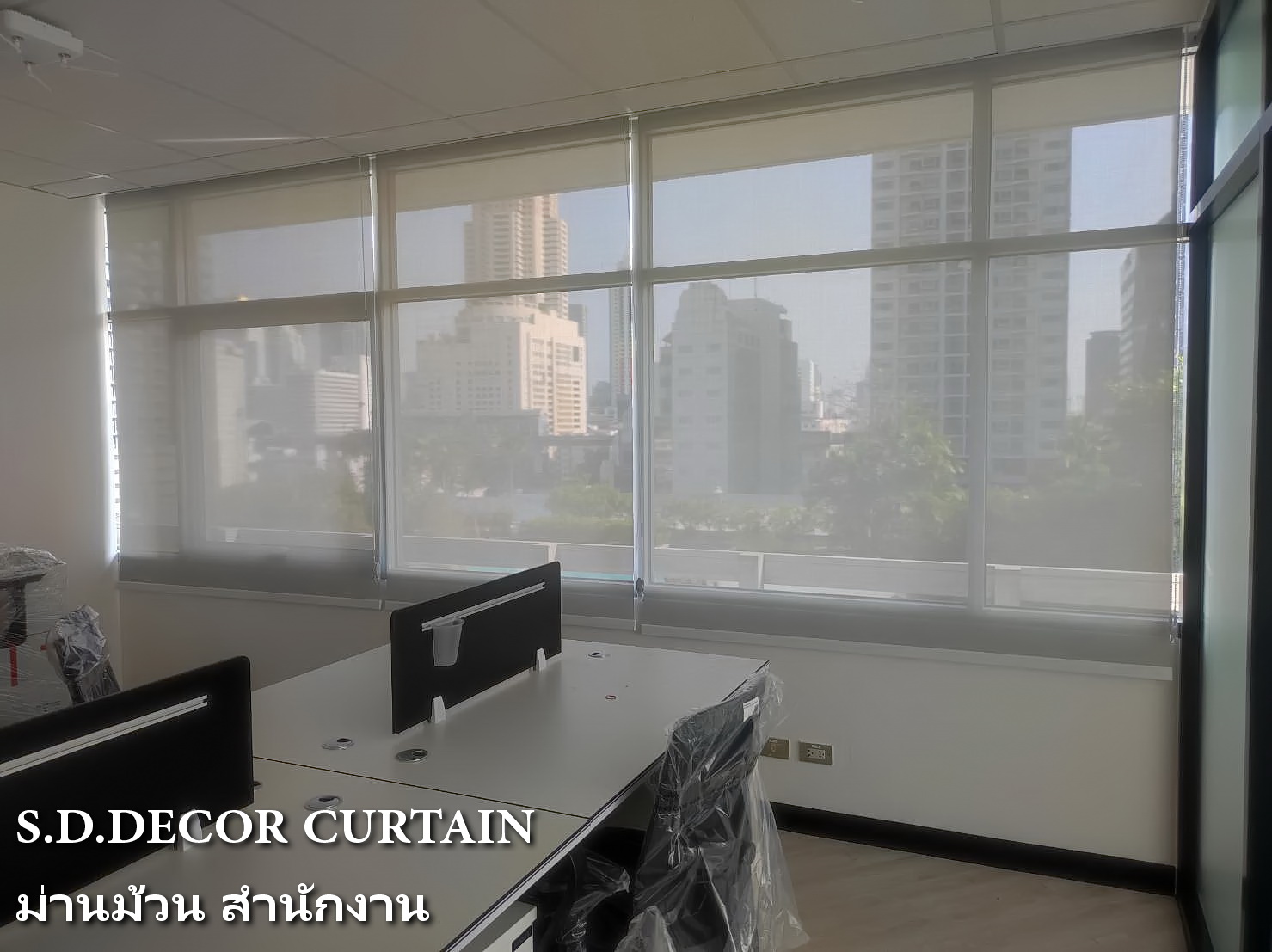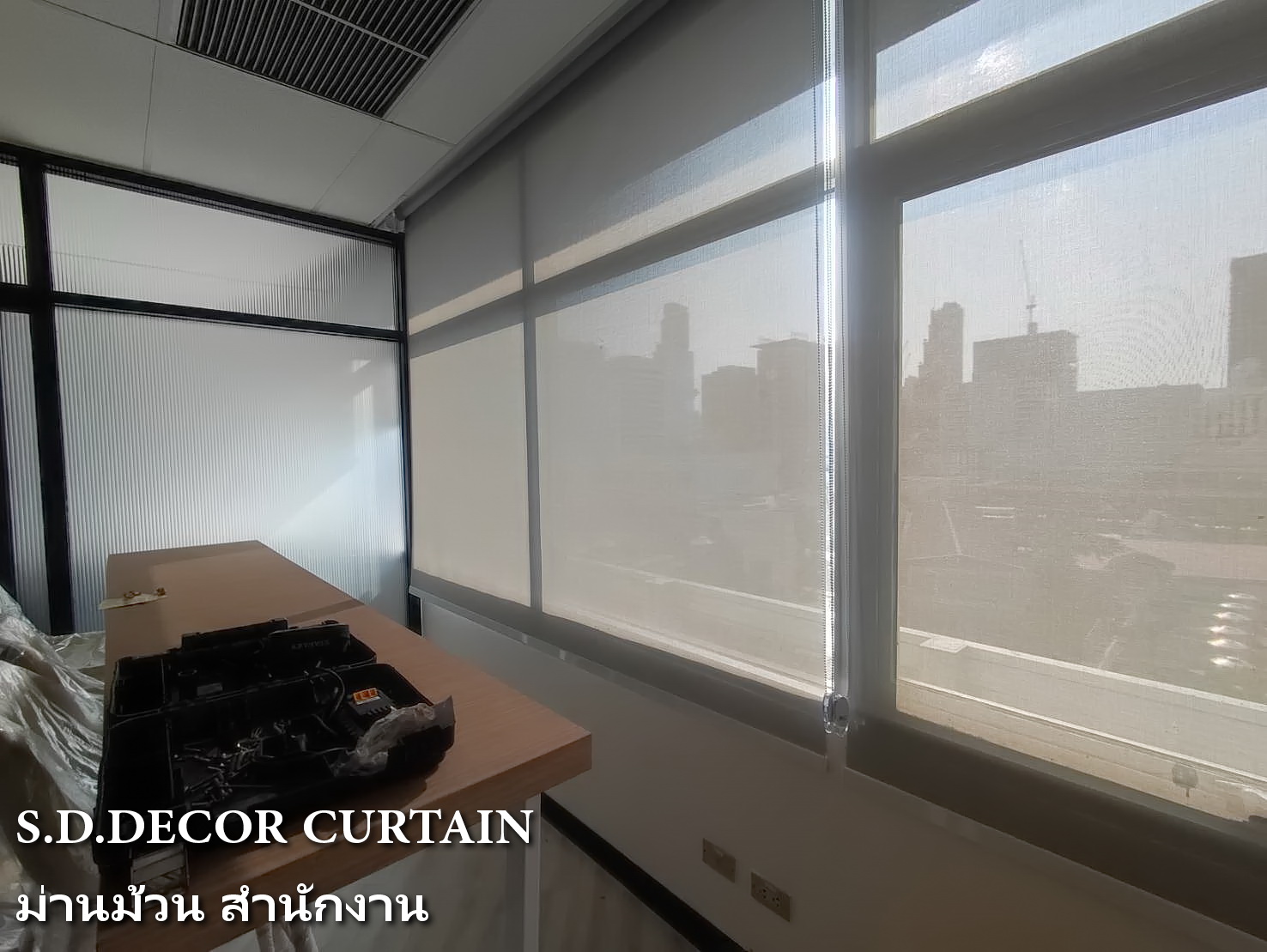 ผลงานม่านม้วน สำนักงานออฟฟิศ ตึกไทยทาวเวอร์ พญาไท