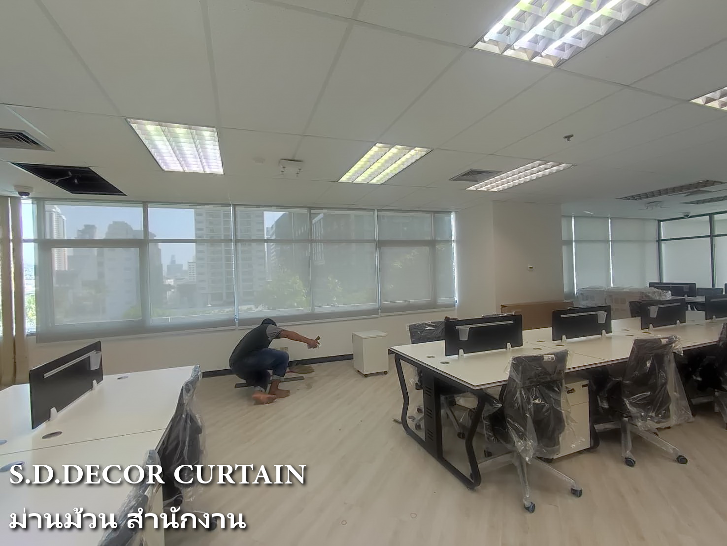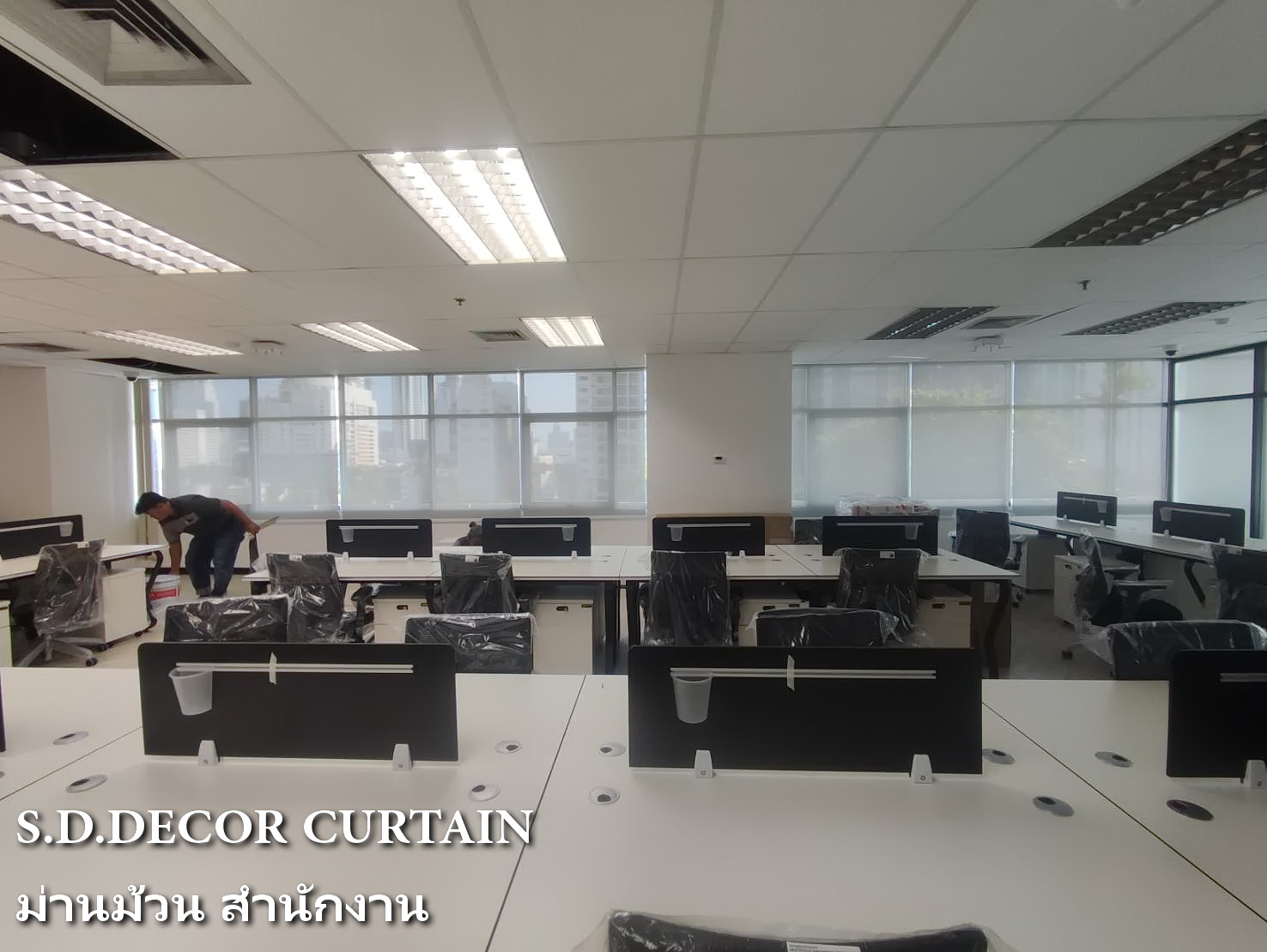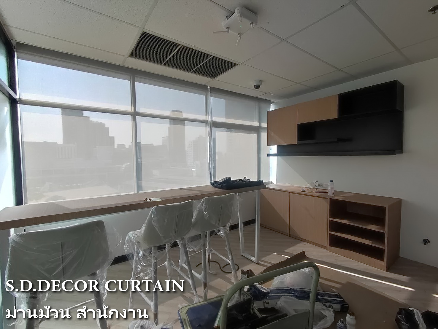 ผลงานม่านม้วน สำนักงานออฟฟิศ ตึกไทยทาวเวอร์ พญาไท